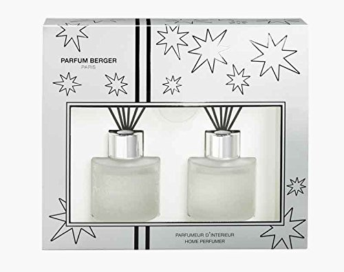 Cofanetto composto da 2 flaconcini 40 ml Bianco ghiacciato decorazione stella preriempite del profumo arancione di cannella, di un imbuto e di 12 aste neri in polimero tecnico