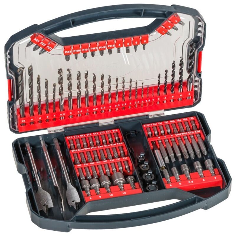 COFANETTO 101 PEZZI PUNTE & BIT KWB Kit promozionale fornito nella valigetta di plastica resistente con chiusura sicura e manico integrato. L integrazione ottimale per tutti gli avvitatori e trapani a batteria e a filo. Ampia gamma di punte per legno, metallo e pietra e bussole esagonali, assortimento di bit nelle dimensioni standard per l inserimento rapido nella macchina. Sostituzione rapida dei bit con il portabit fornito, incluso allargatore per lavori nel legno dolce a un numero di giri basso. Tutti i bit e portabit sono in pregiato acciaio al cromo-vanadio Kit adatto per lavorare con Acciaio, Pietra e Legno. Caratteristiche Contenuto: 101 pezzi Forniti in pratico cofanetto