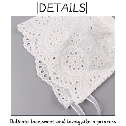 Cofano in Cotone con Pizzo per neonata, per Battesimi, per Neonate e Bambine, Colore Bianco, per Protezione Solare da 0 a 6 Mesi Tessuto-Fiori a Pois 0-6 Mesi