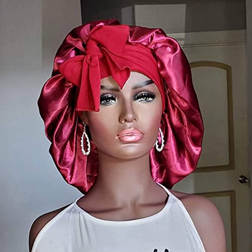 Cofano in raso da donna, taglia XL, per capelli ricci che dormono, cofano per capelli da donna, trecce di raso, cofano in seta con fascia elastica (rosa)