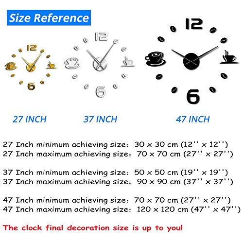 Coffee shop fai da te grande orologio da parete design moderno coffee shop appeso a parete parete della cucina decorazione della tavola(90CM,argento)