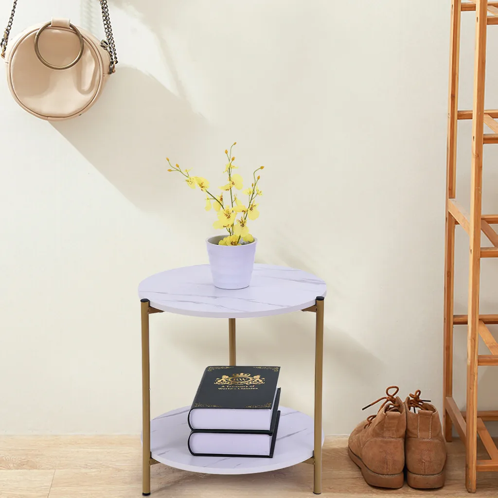 2 Tier Coffee Table, Fashion Small End Table Living Room Light Luxury Coffee Table Creative Sofa Bed Table (40×40×42cm)