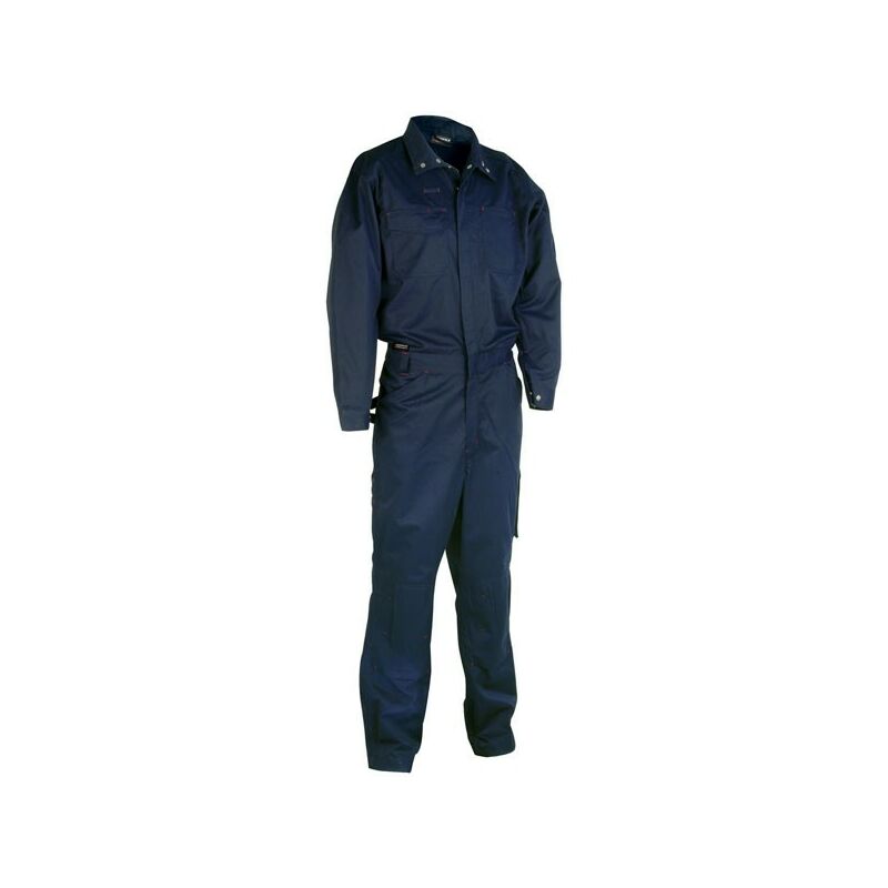 Cotone 100% g/mq 270 colore blu Polsini regolabili - 2 tasche frontali con velcro Tasche anteriori e posteriori - Elastico in vita Tasca portametro - Tasche ginocchiera - Portapenna EN ISO 13688:2013