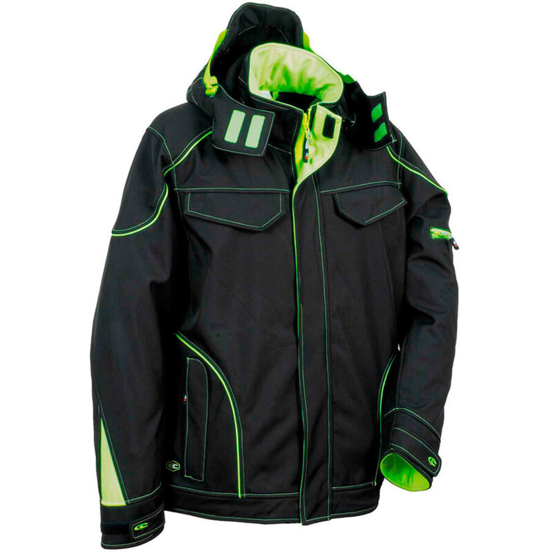 Giacca softshell Black Lime Lime Cofra taglia 56 2 ampie tasche con chiusura con velcro, 2 ampie tasche frontali con chiusura con zip, 1 tasca sulla manica sinistra con chiusura con zip, cappuccio regolabile, separabile e con inserti in gomma per una migliore visibilità, pugni regolabili CON FASCE IN VELCRO, FONDO REGOLABILE CON CORDA, GIACCA SOFTSHELL CON INTERNO IN PILE. COMPOSIZIONE: 100% POLIESTERE + MEMBRANA COFRA-TEX INTERNO 100% POLIESTERE, PESO 300G/M2