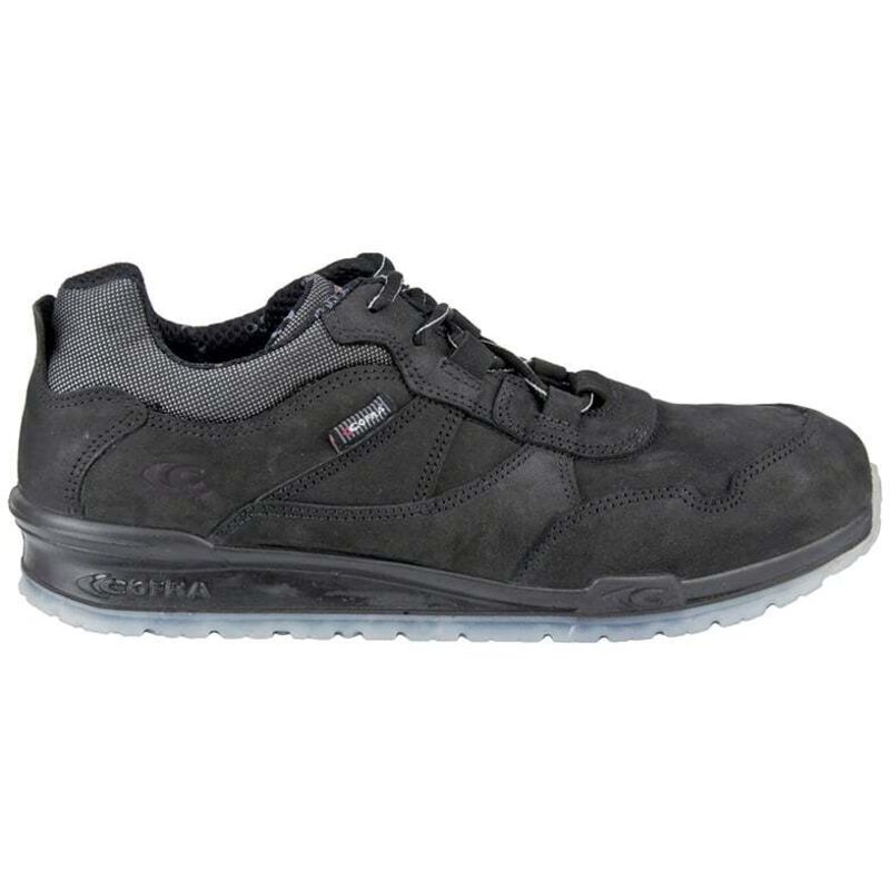 Scarpe Cofra con livello di Sicurezza S3 - Serie RUNNING, modello BRADDOCK Il modello BRADDOCK in particolare è una scarpa bassa con tomaia in nubuck idrorepellente che adotta la fodera SANY-DRY traspirante, interamente costruita in poliammide con azione antibatterica, ed elevata protezione contro le abrasioni del piede. La soletta COFRA SOFT è in poliuretano soffice, confortevole e con design anatomico;