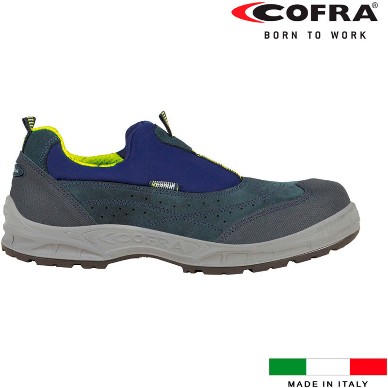 Scarpe antinfortunistiche cofra setubal s1 taglia 47 safety cat s1 p src peso 545gr formato (38-39:10) - (40-47:11) sneaker in pelle scamosciata traforata ed elastan lycra, blu navy, con fodera in tessuto dryfresh 100 % poliestere, antistatico, antishock, antiscivolo, con lamiera antipenetrazione, piastra non metallica senza perforazione