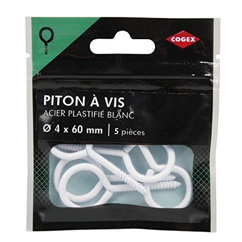 Cogex 85260 Piton ferma plastificato, bianco, 4 x 60 mm, set di 5 pezzi