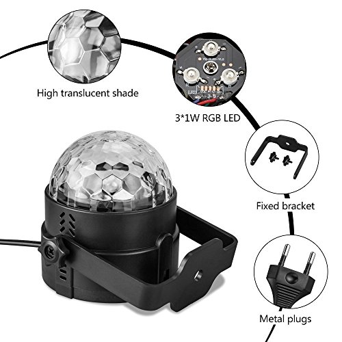 Disco Party Light use any Type of Party: Dance Party, Natale, Halloween, Sleeping Party, Disco Party, Birthday Party, club, karaoke, Wedding DJ Bar. Variety of Music modes, a variety of Dynamic Experience with different Music, Cool Light Show to fill the entire Space.