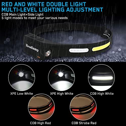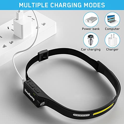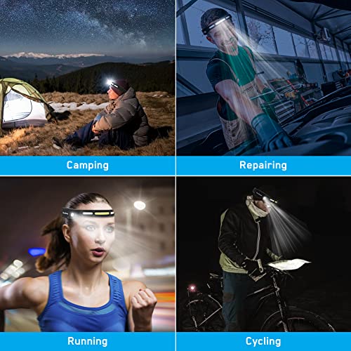Coikes Torcia Frontale, Lampada Testa LED Ricaricabile 500LM, Torcia da Testa con Sensore Intelligente, COB&XPE Lampada da Testa Leggera Impermeabile IP65 super Luminoso a 230 ° con 5 Modalità