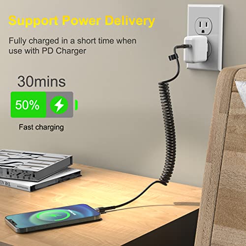 10FT Coiled USB C al cavo di fulmine per auto, iPhone Coiled Lightning Cable Cable DATA USB DATA CHARGER ADATTATORE CONNETTORE CONNETTORE PER IPHONE 13/12/Pro max /11/ XS/XR/X/8/8 PLUS/Pad/Pod