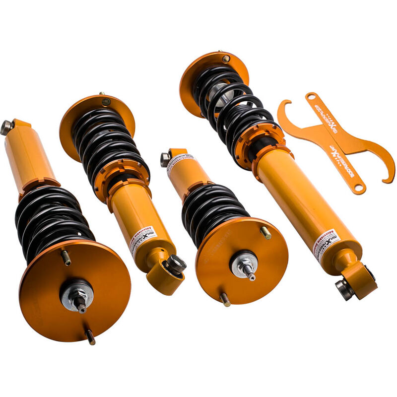 Applications for Nissan Skyline GTST GTS R33 RB25DET Specifications Quantity: 2 piece front + 2 pieces rear Adjustable height: Yes Adjustable camber plate: No Adjustable Damper:yes Warranty: 2 years warranty Notice * No instruction included, Professional installation & alignment suggested. * Please feel free to contact us for whatever we can help via eBay message. Feature * Adjustable ride height * Adjustable pre-load spring tension * Most components are made from 6061 aluminum with T6 for increased hardness -- the advantages include excellent strength, and aluminum helps keep the weight down. * Hi Tensile performance spring - Under 600,000 times continuously test, the spring distortion is less than 0.04%. Plus, the special surface treatment is to improve the durability and performance. * All inserts come with fitted rubber boots to protect the damper and keep clean. * A fast and affordable way to easily upgrade your car's appearance. * Easy installation with right tools. Notice * No