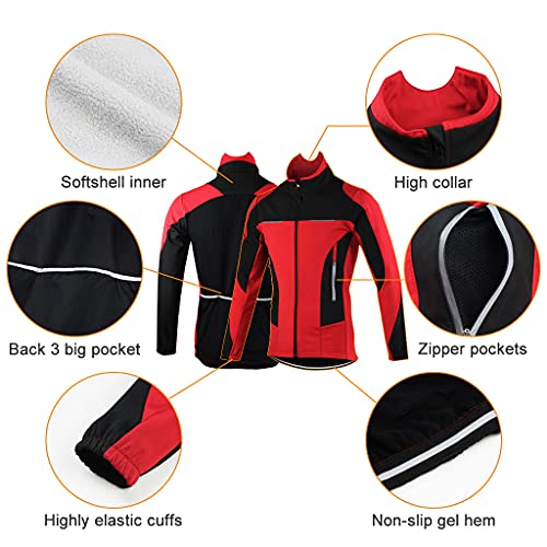 COITROZR Giacca Antivento MTB Uomo Donna Softshell Giacca MTB Uomo Invernale Impermeabile Riflettente Traspirante Giacca Termica Running Inverno Uomo Giacca Ciclismo Giubbotto Bici Invernale,Rosso,L