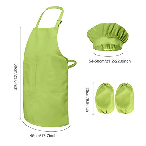 CokinkiDs Set Costume da Cuoco per Bambini e Bambine con Cappello, Maniche e Grembiule, Regolabile, Abbigliamento da Cucina e da Forno (4-15 Anni) Verde