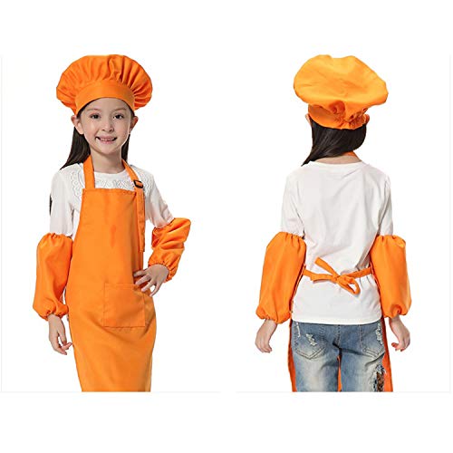 CokinkiDs Set Costume da Cuoco per Bambini e Bambine con Cappello, Maniche e Grembiule, Regolabile, Abbigliamento da Cucina e da Forno (4-15 Anni) Arancione