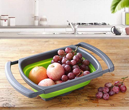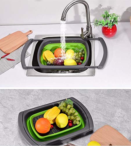 DLD Colander Collapsible, Colander Strainer Over The Sink Veggies/Fruit Strainers and Colanders with Extendable Handles, Folding Strainer for Kitchen, 6-Quart, BPA Free (Green) ...