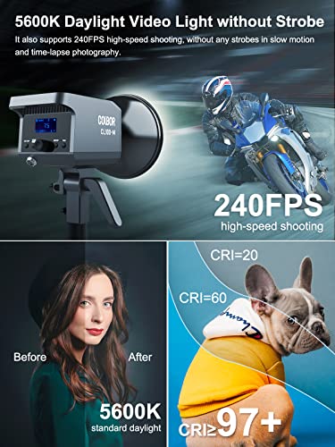 COLBOR CL100M Luce Studio, APP Controllo Continua 100w 5600K Bowens con Telecomando Illuminatore Professionale CRI 97+ per Riprese Fotografico Registrazioni, Monoluci-Faretto-LED-Light-Video