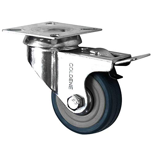 Coldene Castors Ltd 4 ruote girevoli in gomma grigia resistente da 75 mm (2 pollici) (2 x standard, 2 x freni), capacità di carico 60 kg per ruota