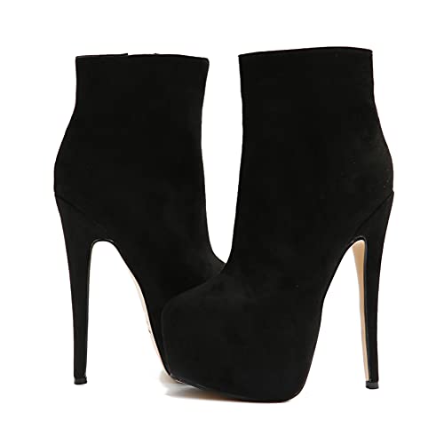 COLETER Donna Piattaforma Stivaletti Cerniera Tacchi Alti Scarpe Stivaletti Corti Cinque Colori Camoscio Nero 5.5UK, Camoscio nero, 38.5 EU