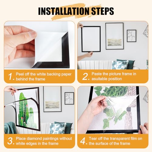 Cornice per foto con diamanti: realizzata in PVC di alta qualità con retro autoadesivo, ecologico, inodore, atossico, durevole e durevole, superficie liscia, mostra chiaramente il tuo bellissimo dipinto con diamantini.