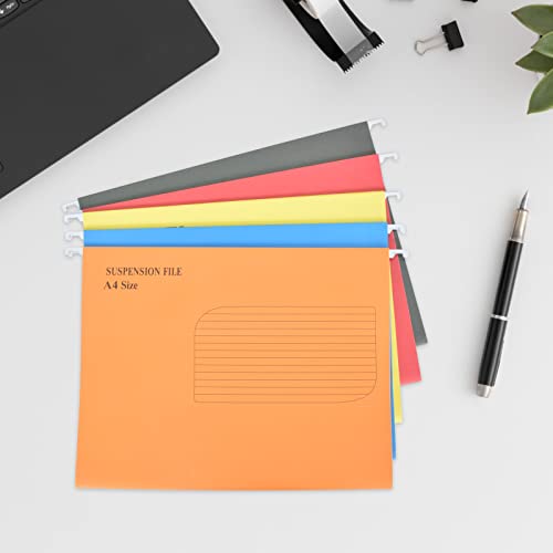 Colexy 10 Pezzi Cartelle A4 Sospese, Cartella Sospesa Verticale, Rinforzate Cartelle Sospese Foolscap con Inserti per Schede, File Sospese A4, per Schedari, Ufficio, Casa, Scuola, 5 Colori