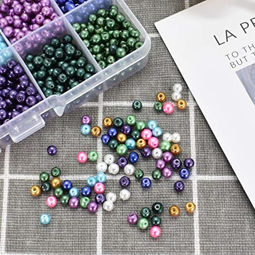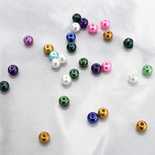 Colexy 1000 Pezzi Perle Rotondo Vetro, 4 mm Perline Vetro Perlaceo Rotonde, Perline Perla Tinte, Misti Colori Finte, Perline 4mm Rotondo con Foro per Decorazione bigiotteria Fai da Te