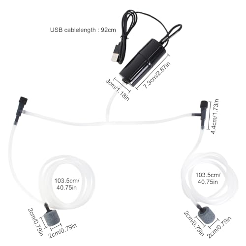 Colexy Pompa ad Aria Oxygen USB per Acquario, Pompa del l'Aria del l'Acquario Portatile Pompa per Ossigeno Mini Silenzioso con 2 Air Stone e 2 tubo in silicone Aquarium Air Pump Serbatoio di pesce