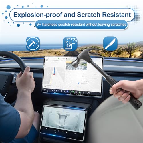 【Facile da installare】La pellicola protettiva per display può essere automaticamente adsorbito sullo schermo premendo delicatamente, installazione facile e veloce. Questa protezione dello schermo in vetro temperato è accessori Tesla Model 3 perfetto.
