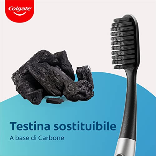Colgate Refill Spazzolino Keep Slim Soft Carbone 2 testine sostituibili I Setole Morbide al Carbone I manico in metallo | rimuovere il cibo e la placca lungo la linea gengivale