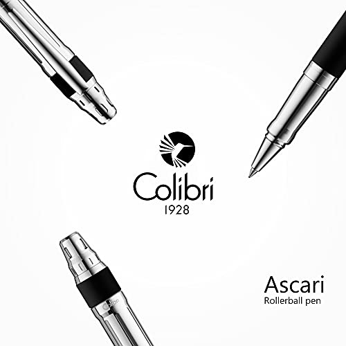 Colibri Penna Roller Ascari-Cromata e nero effetto gommato-Penna di lusso-Clip a molla medio-Viene fornita in una elegante confezione regalo-Adatta per uomini e donne.