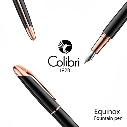 Colibri Penna stilografica Equinox-in acciaio laccato nero clip a molla dorato oro rosa-Penna di lusso-Pennino Bock medio-Viene fornita in una elegante confezione regalo-Adatta ad uomini e donne.