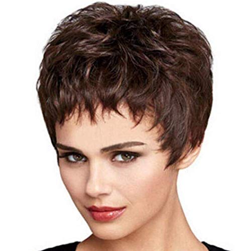 COLIFAS Parrucche per Donna, Capelli Corti castani Ricci da Donna, Morbidi Come Capelli Veri, Parrucca per Feste Ogni Giorno, Parrucca, posticci