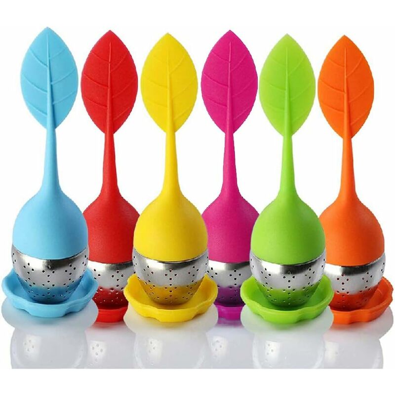 una bella decorazione per la cucina Realizzato al 100% in silicone alimentare, non tossico, nessun odore e sapore uscirà dal tuo tè In modo che nulla goccioli sul tavolo, basta posizionare l'infusore per il tè sul piattino abbinato Adatto a tutti i tè sfusi o alle erbe: menta, tè verde, tè nero, salvia, camomilla, melissa, ortica, earl grey, tè alla frutta, miscele e molti altri. Eccellente design dell'infusore per il tè con molti piccoli fori, impedisce alle foglie di tè di finire in bocca mentre si beve Descrizione del prodotto *Set di 6 infusori per tè in silicone * Dimensioni: 15 cm x 3 cm * Materiale: parte superiore: silicone, setaccio: acciaio inossidabile * Design speciale del filtro per il tè * Piccoli fori impediscono alle foglie di tè di entrare nel tè * Realizzato in materiale alimentare silicone e acciaio inossidabile di alta qualità. Nessun sapore o odore viene trasferito al tè.