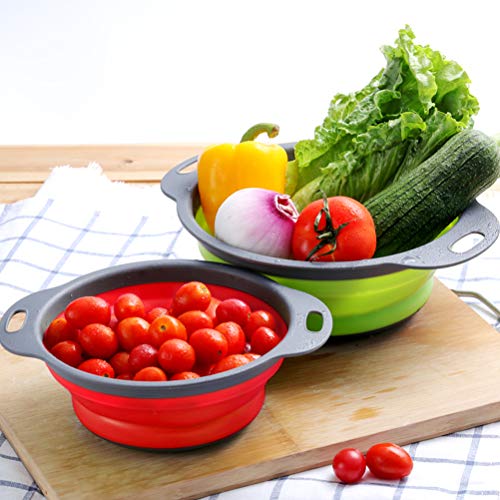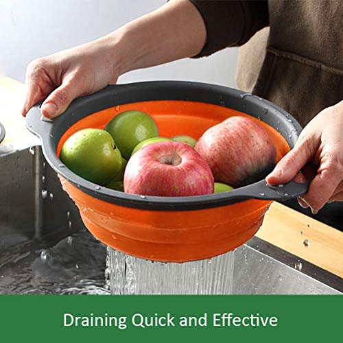 Set di 3 colini da cucina pieghevoli in silicone con manici in plastica - 4 litri e 2 litri per scolare pasta, verdure, frutta (verde, arancione, rosso)