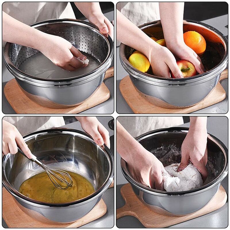 Colino da cucina e insalatiera in acciaio inox. Specifiche tecniche: 26 cm. Peso: 0,9 kg. Materiale: Acciaio inox 18/10, sicuro, antiruggine e robusto, ideale per filtrare verdure e pasta o altri alimenti, impilabile, salvaspazio, contiene 1 colino da cucina, 1 ciotola per insalata