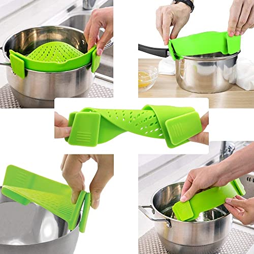 Colino da cucina in plastica, colino per pasta a clip, scolapiatti a scatto, resistente al calore, filtro per alimenti, filtro (verde)