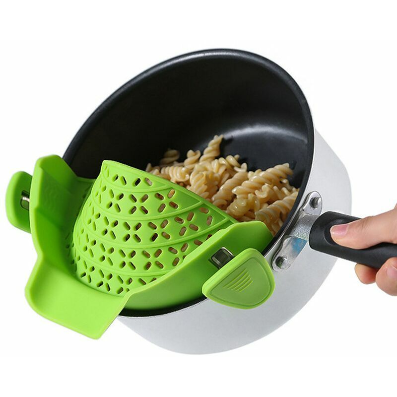 PERFETTO CONTATORE DI CIBO - Attacca semplicemente lo scolapasta alla pentola con due robuste clip. Il filtro a clip mantiene il cibo nella pentola durante il processo di filtraggio, eliminando il fastidio di trasferire il cibo tra il filtro e la pentola 【DESIGN UNIVERSALE】 Le clip appositamente progettate si adattano a quasi tutte le pentole rotonde, padelle e ciotole grandi e piccole (comprese le ciotole per labbra) 【FACILE DA USARE】 Filtrare e drenare facilmente i liquidi da spaghetti, pasta, carne macinata, pesce, frutta, verdura e altri alimenti 【 RISPARMIO DI SPAZIO 】 Colino per alimenti compatto e flessibile, facile da usare e riponibile in un quarto delle dimensioni di un colino tradizionale, risparmiando spazio sull'armadio e sul bancone 【 DUREVOLE e RESISTENTE AL CALORE 】 Le clip del filtro in silicone sono realizzate in Safe e silicone atossico, senza BPA, lavabile in lavastoviglie. Il colino per alimenti in silicone può resistere a temperature di 230°C e non si crepa