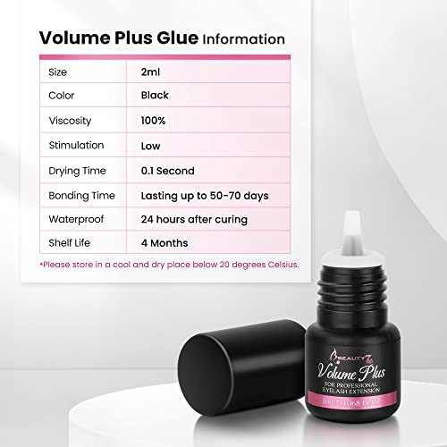 [La Colla per Asciugatura più Rapida] - La colla Volume Plus è la colla per ciglia ad asciugatura più rapida di tutte le colle beauty7, tempo di asciugatura di 0,5 ~ 1 secondo, perfetta per artisti avanzati per creare sia ciglia classiche che ciglia a volume russo.