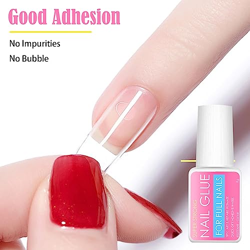 Colla Per Unghie Finte Super Forte Colla, 4 x 8g Nail Bond Colla per Unghie Finte con un Pennello, Extra Forte Colla per Unghie da salone e Decorazioni Strass