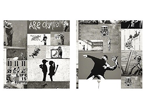 Runa Art Collage Banksy Quadri Moderni - Made In Germany - Murali Arte Di Strada Marrone 4 Pezzi 302742c