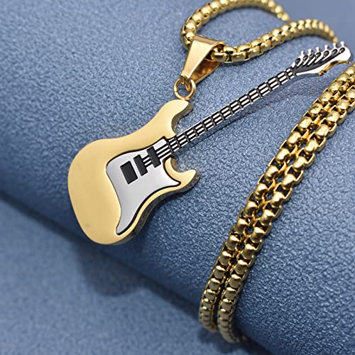 Collana da uomo in acciaio inox, con ciondolo a forma di chitarra elettrica, lunghezza 55 cm, lunghezza 3 mm, Acciaio inossidabile, Nessuna pietra preziosa