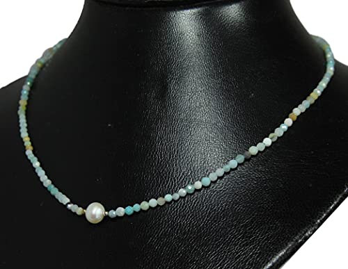 Collana amazzonite a forma di sfera sfaccettata con una perla d'acqua dolce in argento 925