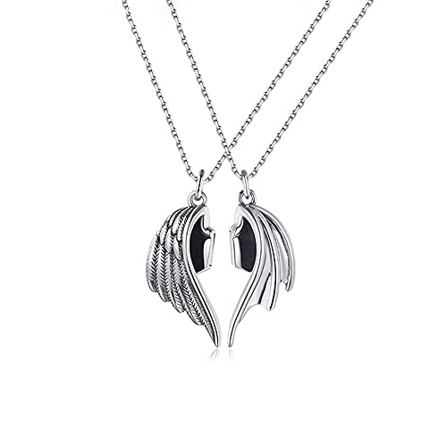 Collana con cuore damore: collana di famiglia con collana di cuciture per coppie damore, collana doppia con ali che volano, collana con coppia di diavoli e angeli. Siamo come un paio di ali, senza laltra, non possiamo volare.