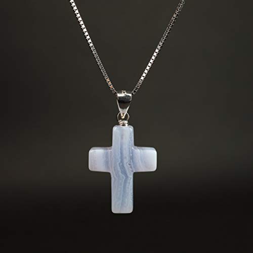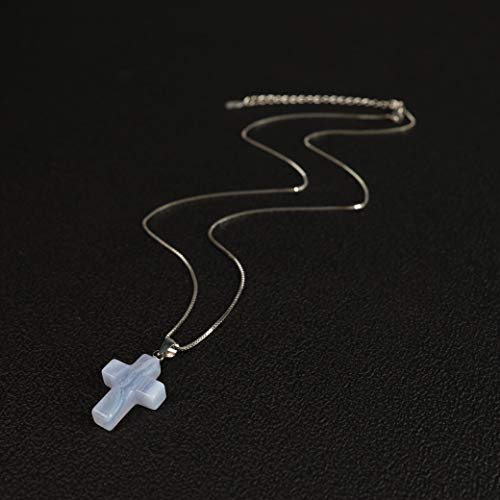 COAI Collana in Argento 925 con Ciondolo Croce in Agata Azzurra