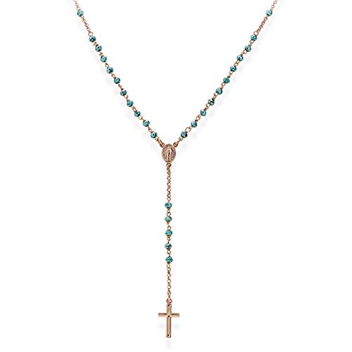 Collana Da Donna Di Amen Della Collezione Rosari. Rosario Classico In Argento 925 Rosè E Cristalli Cangianti Petrolio. Gioiello Della Lunghezza Di 50+2Cm. La Referenza È Crorp4