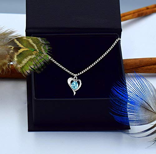 Collana in argento Sterling 925 con cristalli, a forma di cuore, in diversi colori, con ciondolo per donna, gioiello da donna con confezione regalo (Aquamarine)