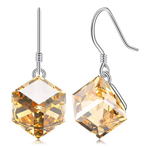 Collana in argento Sterling S925 con cristalli Swarovski Elements che cambiano colore cubo orecchini pendenti per donne e ragazze e Argento, colore: Giallo, cod. SWD-Y