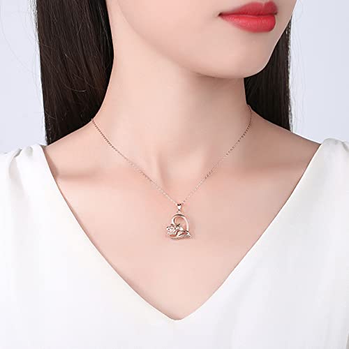 Collana in argento Sterling da donna, con ciondolo a forma di cuore, con fiore di rosa, regalo romantico per fidanzata, moglie, compleanno, Natale, San Valentino, per donne e ragazze, Metallo