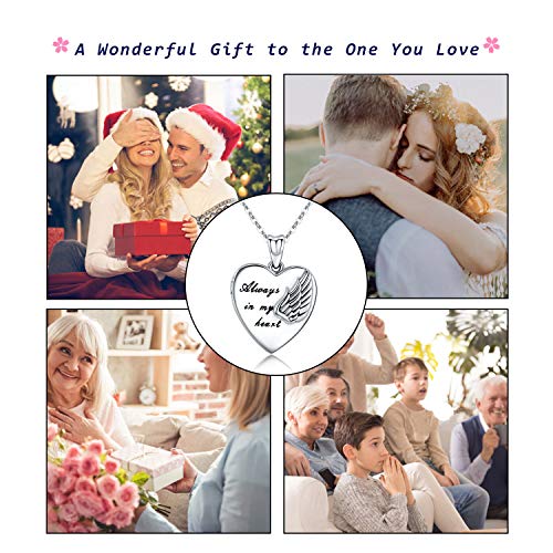 Collana in argento Sterling con medaglione a forma di cuore e ali d'angelo custode, regalo per donne e ragazze, con medaglione portafoto (Collane-1)