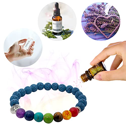 Collana e Bracciale Albero della Vita, Pietra Lavica, Aromaterapia, 7 Chakra (Teal)
