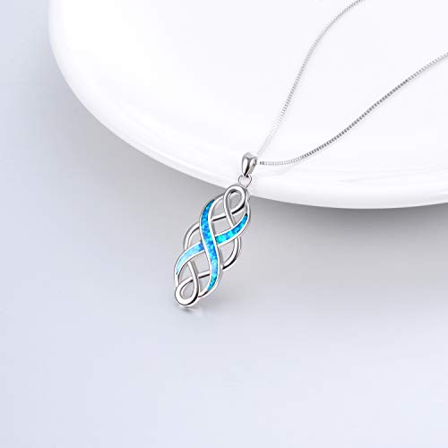 YFN Collana con Nodo Celtico Creato con Ciondolo Opale in Argento Sterling, Gioielli D'amore Infinito (Collana con Opale Blu) (Blue)